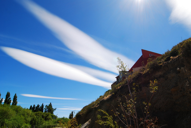 天空藍得太過輝煌,雲朵不經意的在天空揮灑出奇異幻化的圖樣。