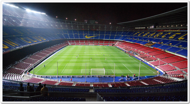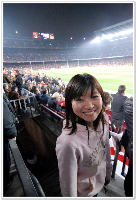 在裝滿五萬人的足球場替巴塞隆納隊的Messi大聲吶喊