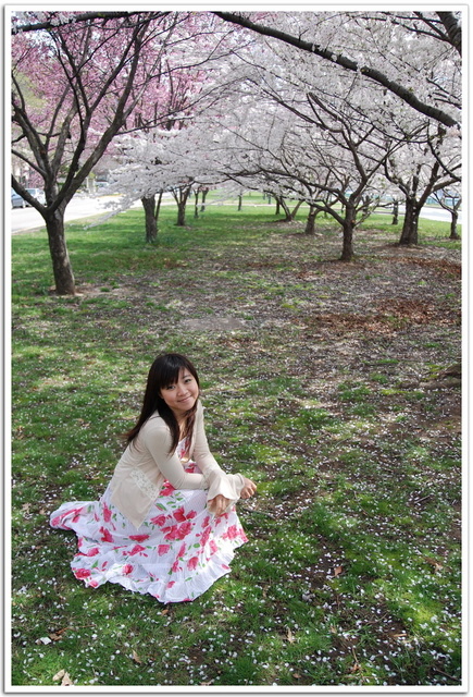 學校旁的查爾斯河畔開滿了遍地櫻花