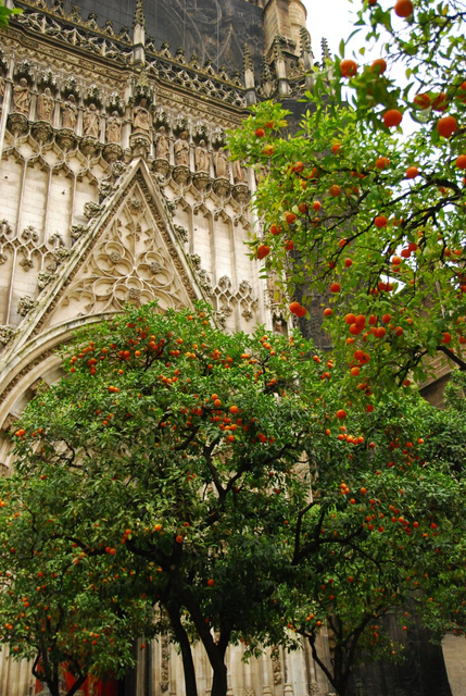 教堂旁邊的花園,樹上開滿了橘子,很可愛